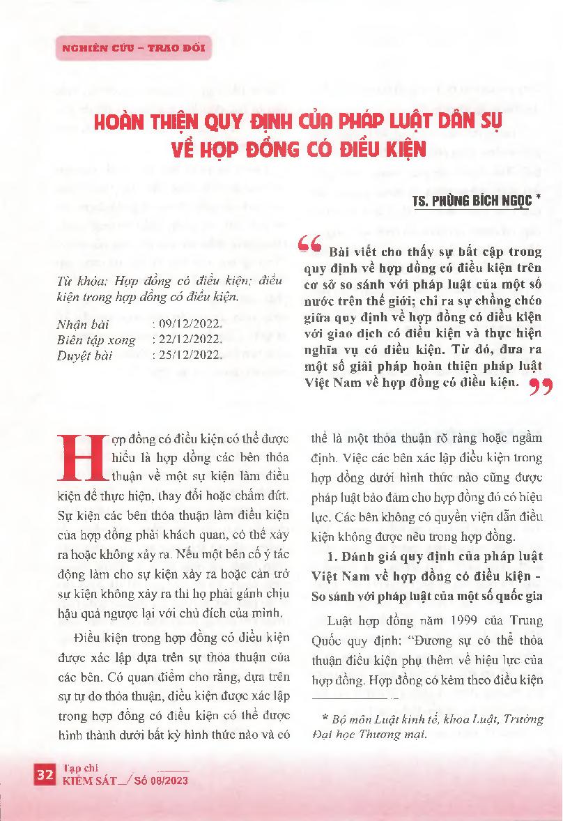 Hoàn thiện quy định của pháp luật dân sự về hợp đồng có điều kiện