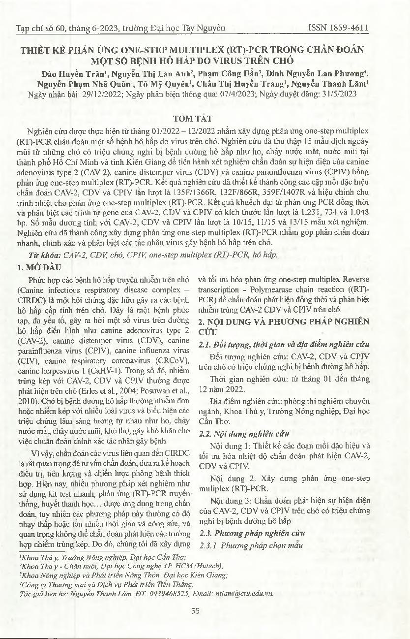 Thiết kế phản ứng one-step multiplex (RT) - PCR trong chẩn đoán một số bệnh hô hấp do virus trên chó