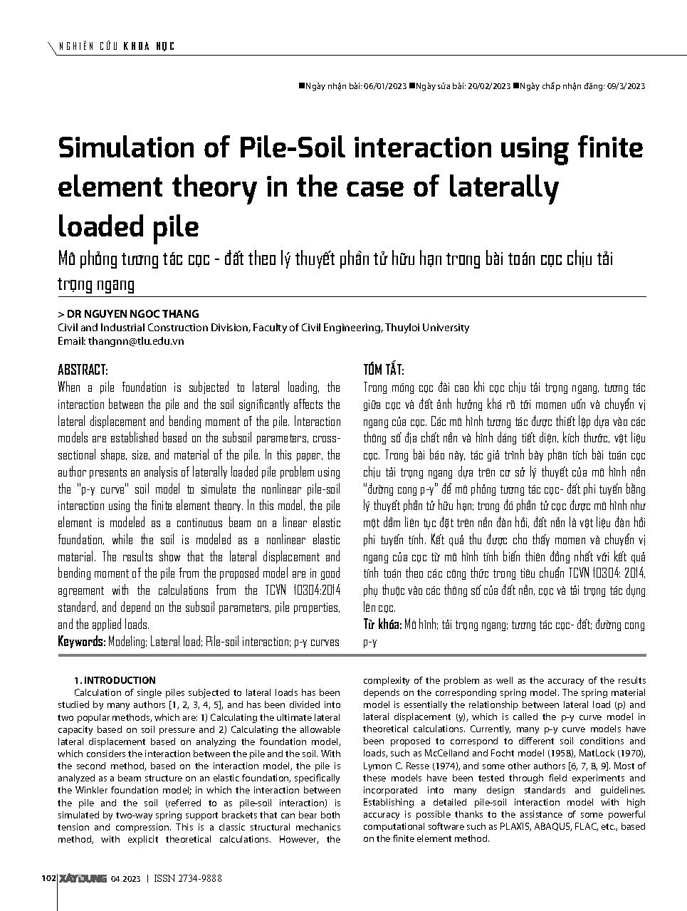 Mô phỏng tương tác cọc - đất theo lý thuyết phần tử hữu hạn trong bài toán cọc chịu tải trọng ngang = Simulation of Pile-Soil interaction using finite element theory in the case of laterally loaded pile