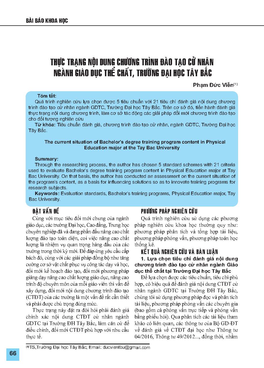 Thực trạng nội dung chương trình đào tạo cử nhân Ngành Giáo dục thể chất, Trường Đại học Tây Bắc = The current situation of Bachelor&; 39;s degree training program content in Physical Education major at the Tay Bac University