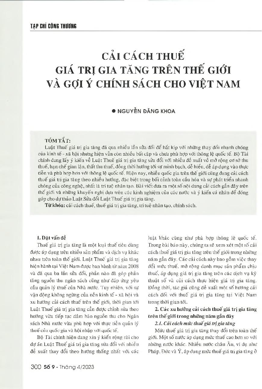 Cải cách thuế giá trị gia tăng trên thế giới và gợi ý chính sách cho Việt Nam