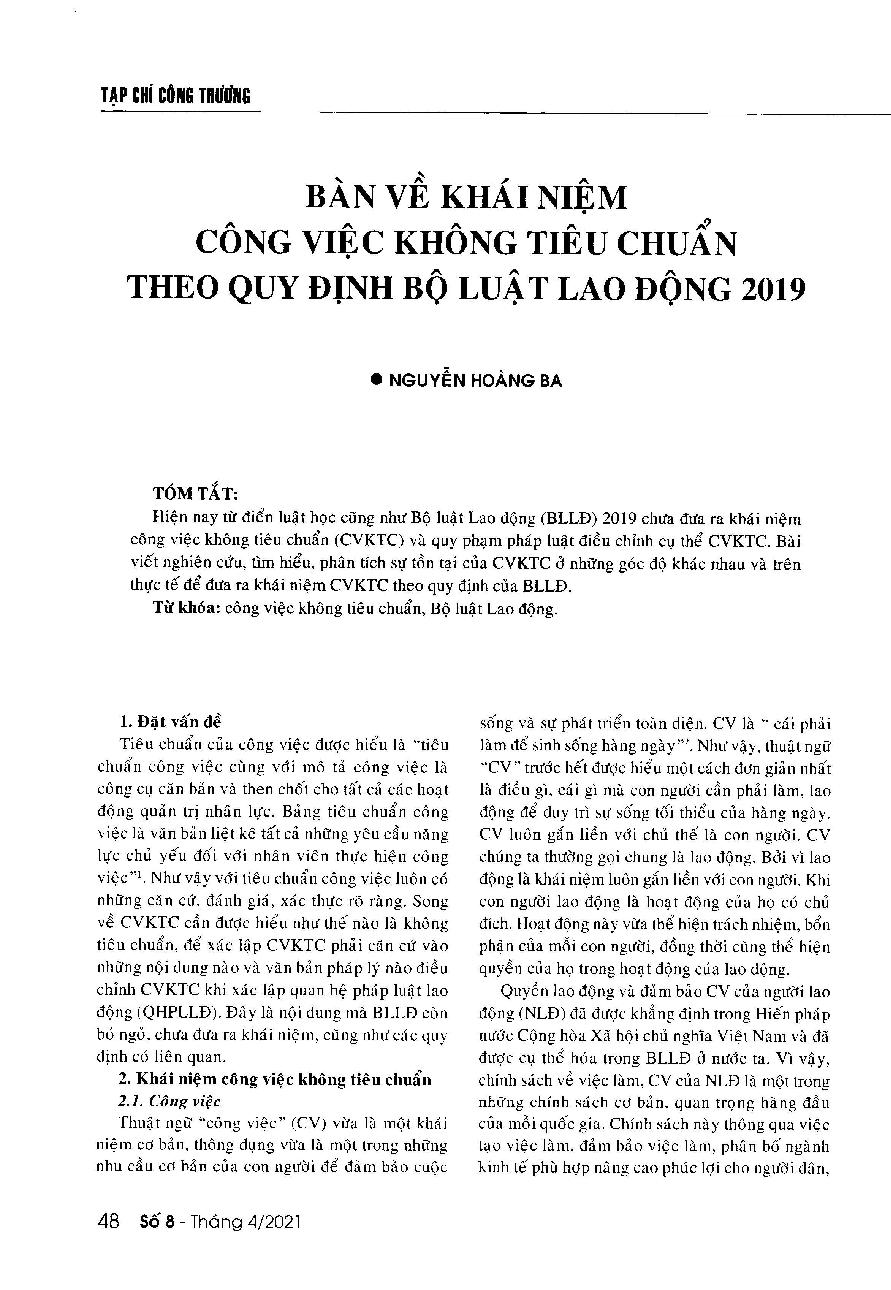 Bàn về khái niệm công việc không tiêu chuẩn theo quy định Bộ luật Lao động 2019
