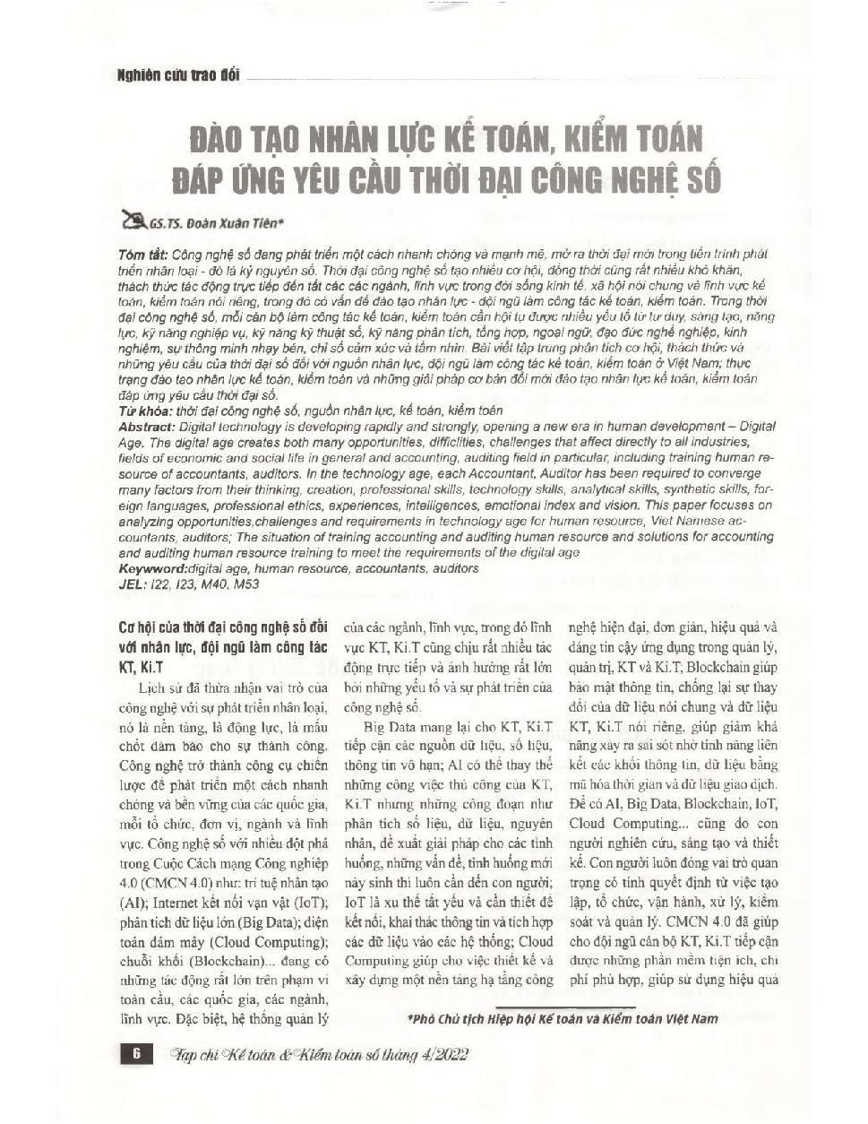 Đào tạo nhân lực kế toán, kiểm toán đáp ứng yêu cầu thời đại công nghệ số = Training human resource of accountants, auditors meet the requirements of the digital technology age