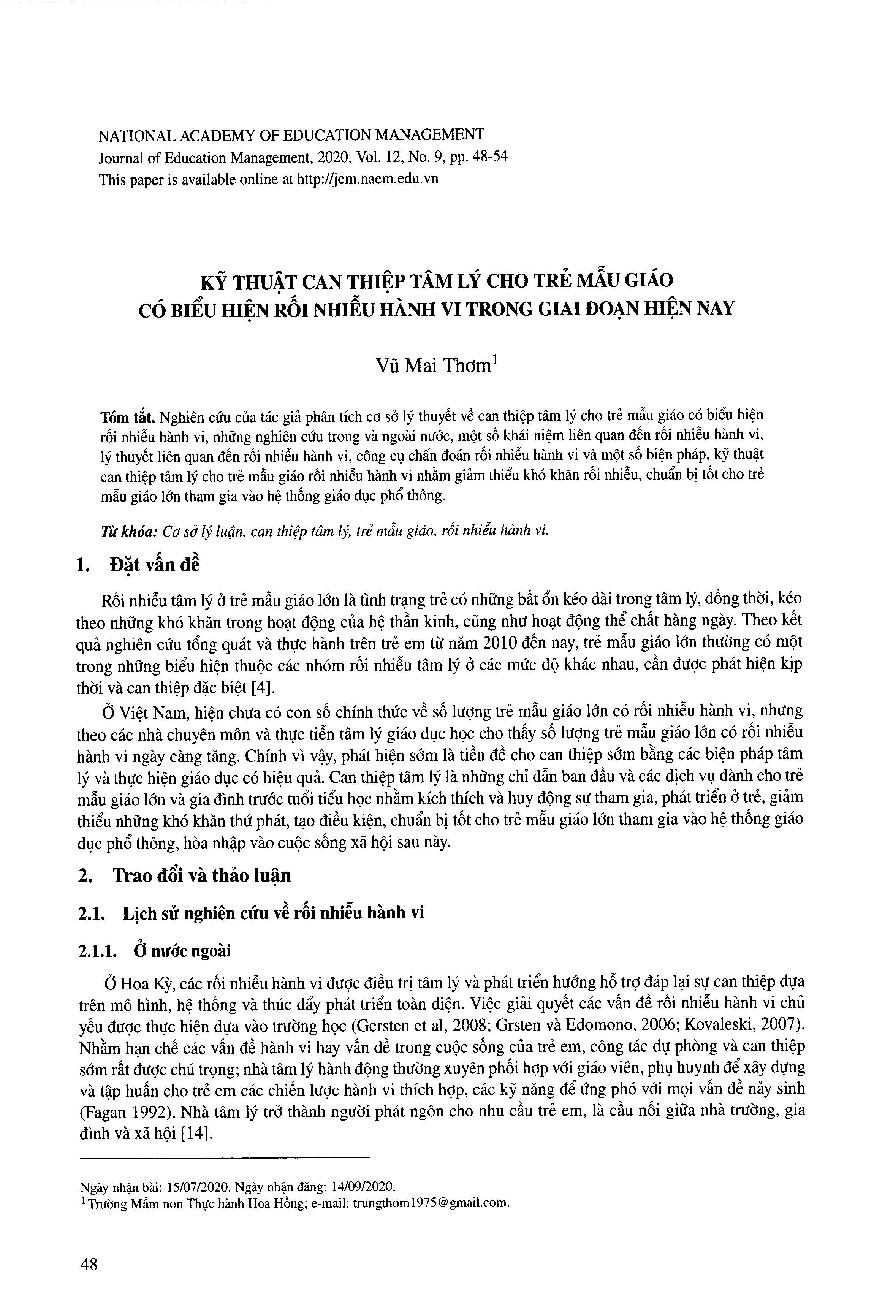 Kỹ thuật can thiệp tâm lý cho trẻ mẫu giáo có biểu hiện rối nhiễu hành vi trong giai đoạn hiện nay = Theoretical basis for psychological intervention for preschool children with behavior disturbance