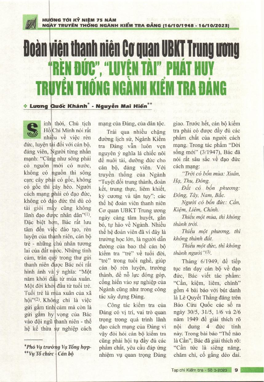 Đoàn viên thanh niên Cơ quan UBKT Trung ương "rèn đức", "luyện tài" phát huy truyền thống Ngành Kiểm tra Đảng