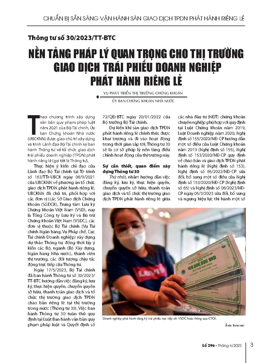 Thông tư số 30/2023/TT-BTC nền tảng pháp lý quan trọng cho thị trường giao dịch trái phiếu doanh nghiệp phát hành riêng lẻ