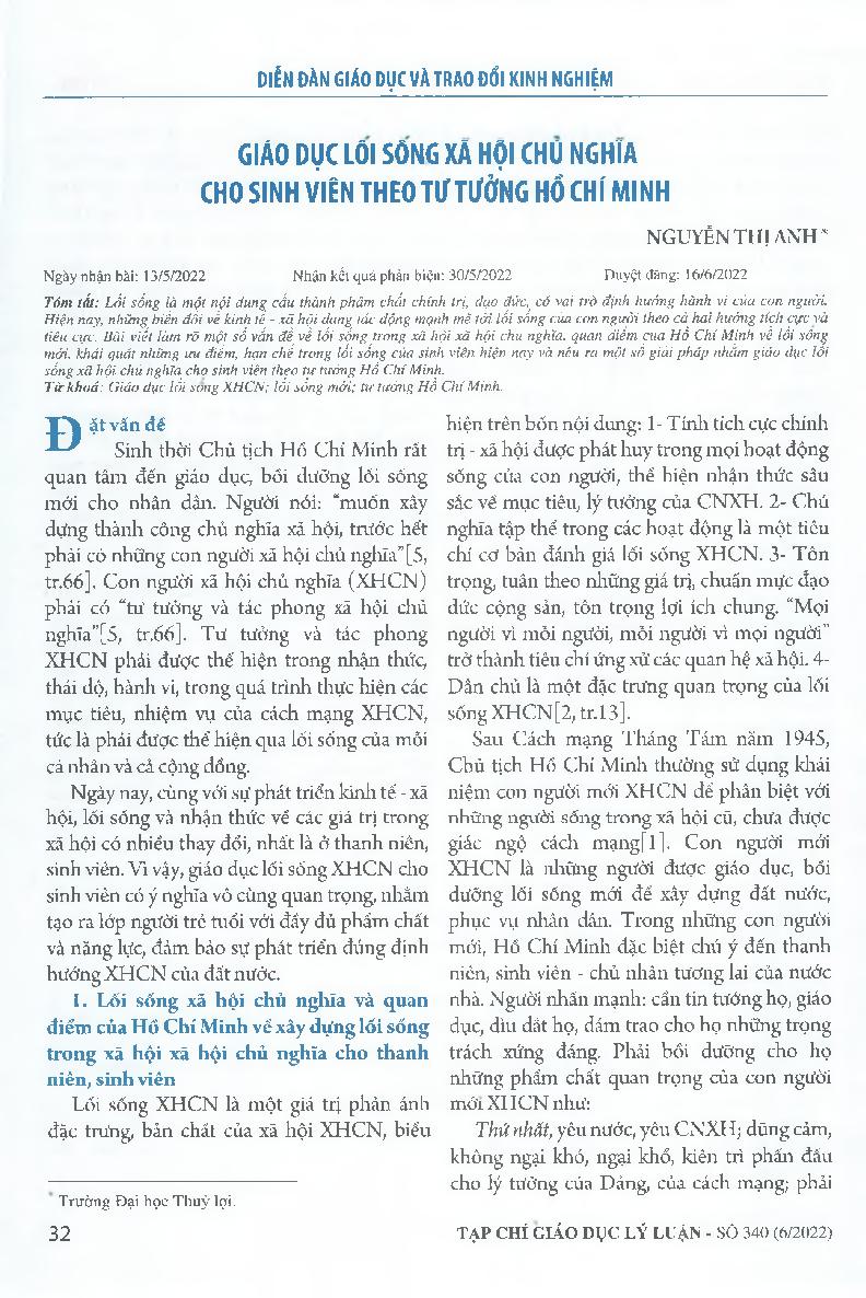Giáo dục lối sống xã hội chủ nghĩa cho sinh viên theo tư tưởng Hồ Chí Minh