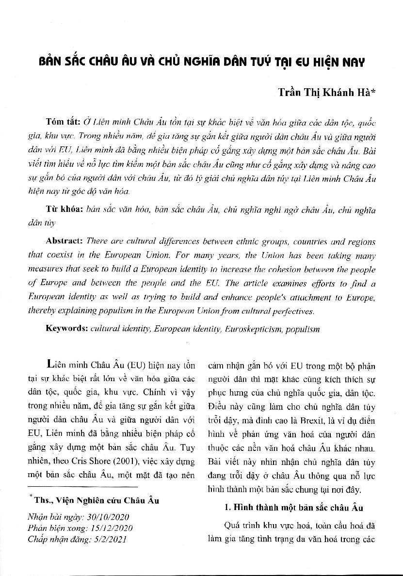 Bản sắc châu Âu và chủ nghĩa dân tuý tại EU hiện nay