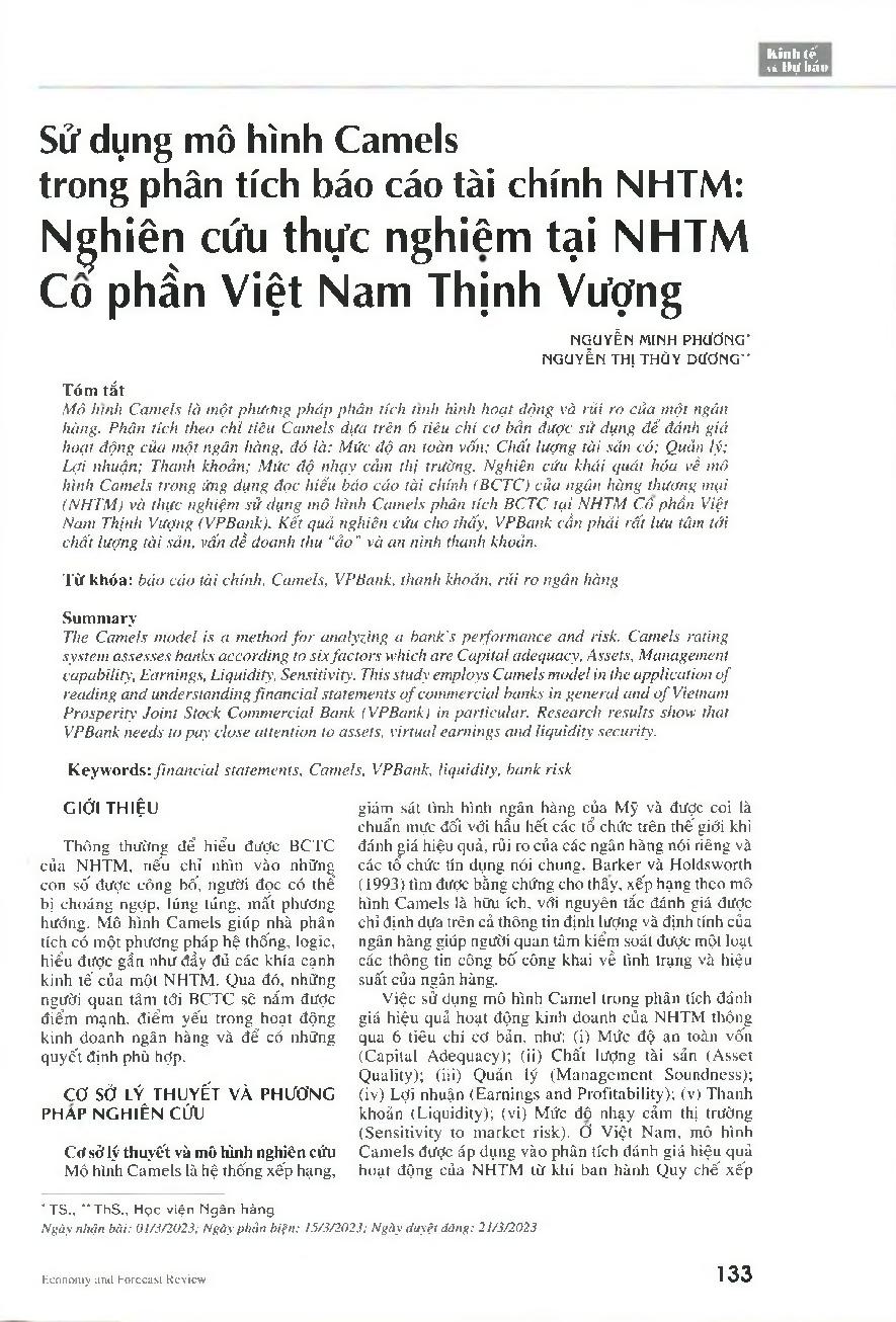 Sử dụng mô hình Camels trong phân tích báo cáo tài chính NHTM: Nghiên cứu thực nghiệm tại NHTM cổ phần Việt Nam Thịnh Vượng