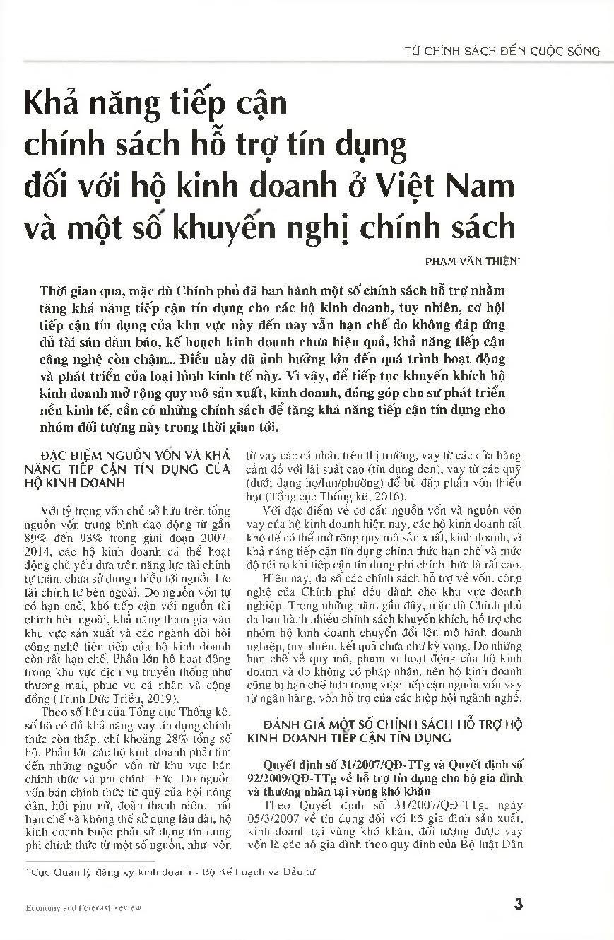Khả năng tiếp cận chính sách hỗ trợ tín dụng đối với hộ kinh doanh ở Việt Nam và một số khuyến nghị chính sách