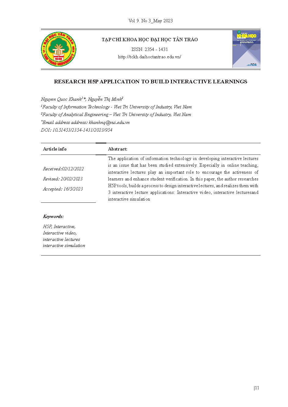 Nghiên cứu ứng dụng H5P để xây dựng bài giảng tương tác = Research H5P application to build interactive learnings