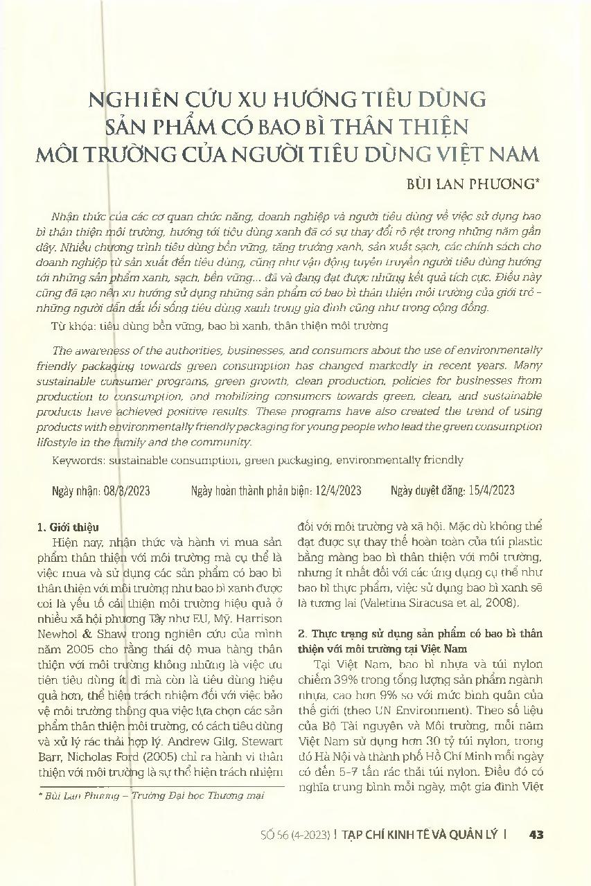 Nghiên cứu xu hướng tiêu dùng sản phẩm có bao bì thân thiện môi trường của người tiêu dùng Việt Nam