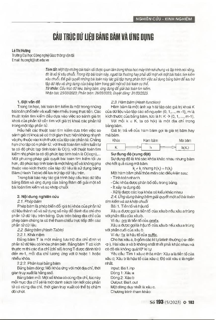Cấu trúc dữ liệu bảng băm và ứng dụng = The hash table data structures and its applications