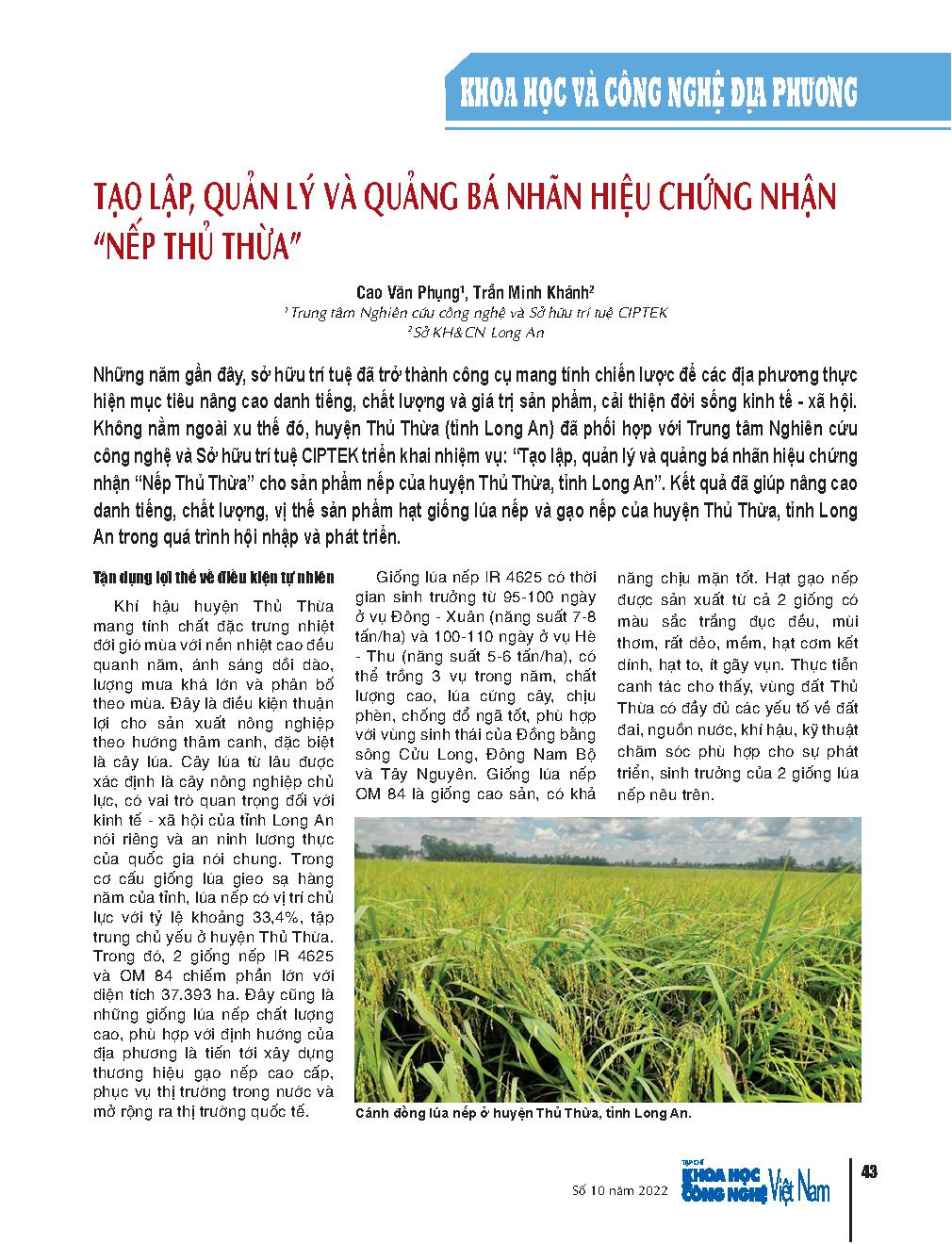 Tạo lập, quản lý và quảng bá nhãn hiệu chứng nhận “nếp thủ thừa”