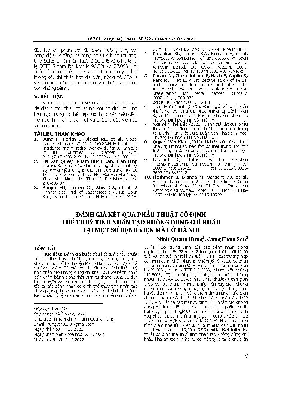 Đánh giá kết quả phẫu thuật cố định thể thuỷ tinh nhân tạo không dùng chỉ khâu tại một số bệnh viện mắt ở Hà Nội = To evaluate initially the outcomes of intraocular lens fixation without sutures at some eye hospitals in Hanoi