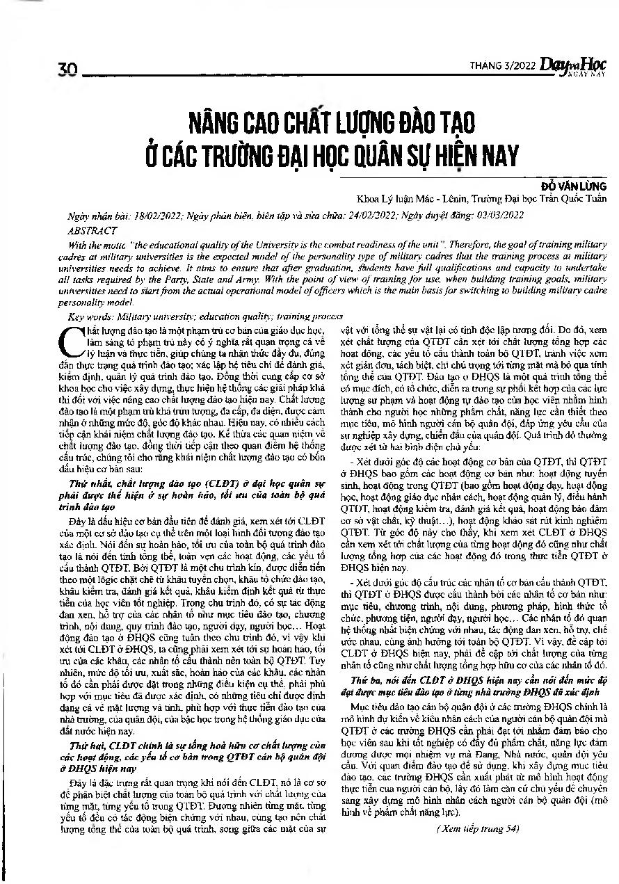 Nâng cao chất lượng đào tạo ở các trường đại học quân sự hiện nay = Improving the quality of training at military universities today
