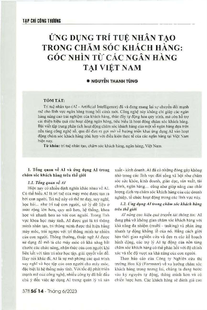 Ứng dụng trí tuệ nhân tạo trong chăm sóc khách hàng: Góc nhìn từ các ngân hàng tại Việt Nam