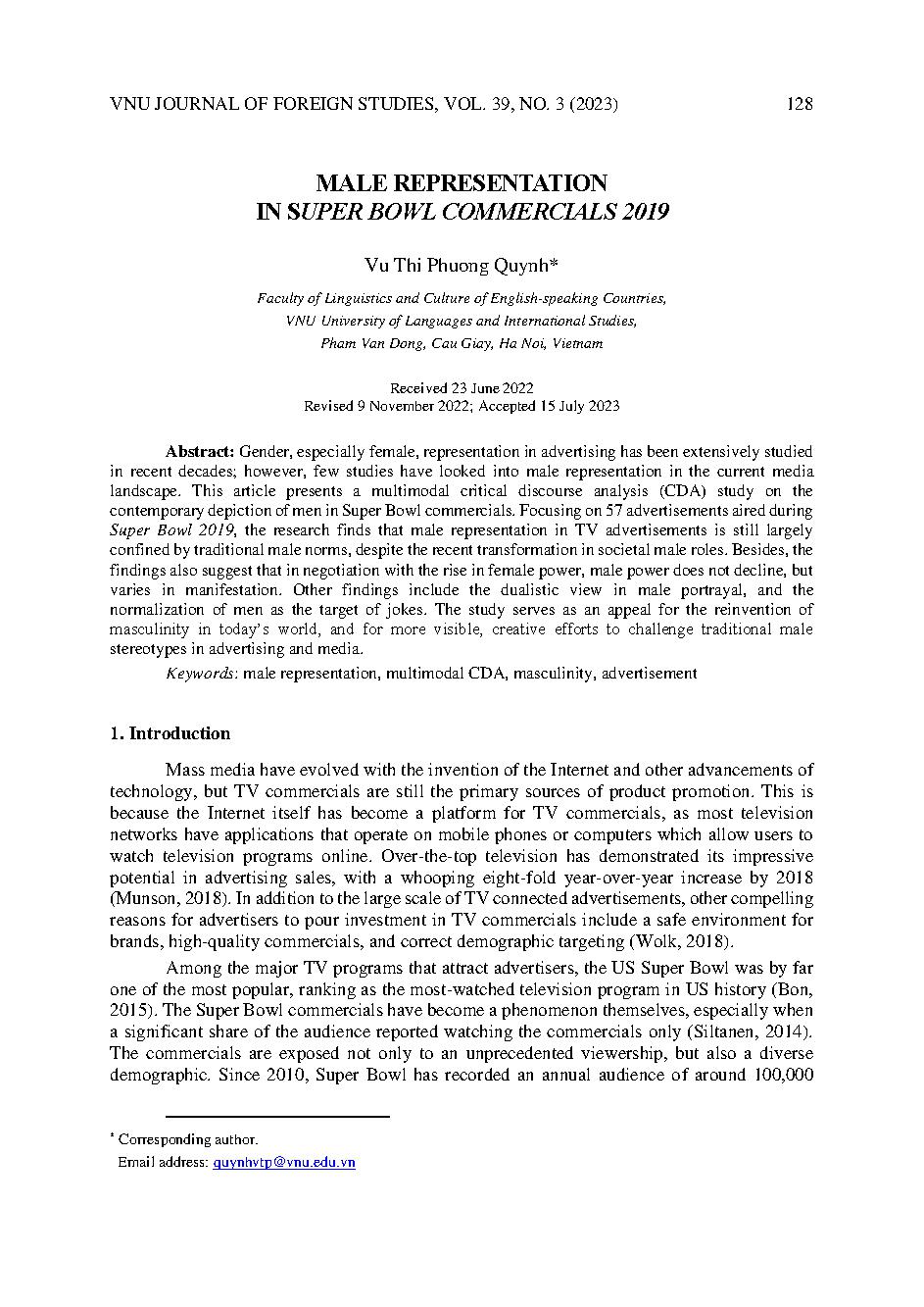 Sự thể hiện nam giới trong quảng cáo Super Bowl 2019 = Male representation in Super Bowl commercials 2019