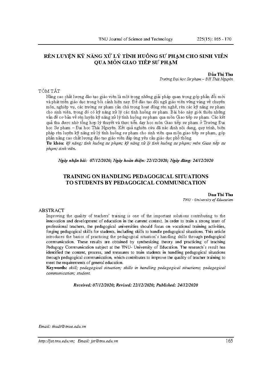 Rèn luyện kỹ năng xử lý tình huống sư phạm cho sinh viên qua môn giao tiếp sư phạm = Training on handling pedagogical situations to students by pedagogical communication