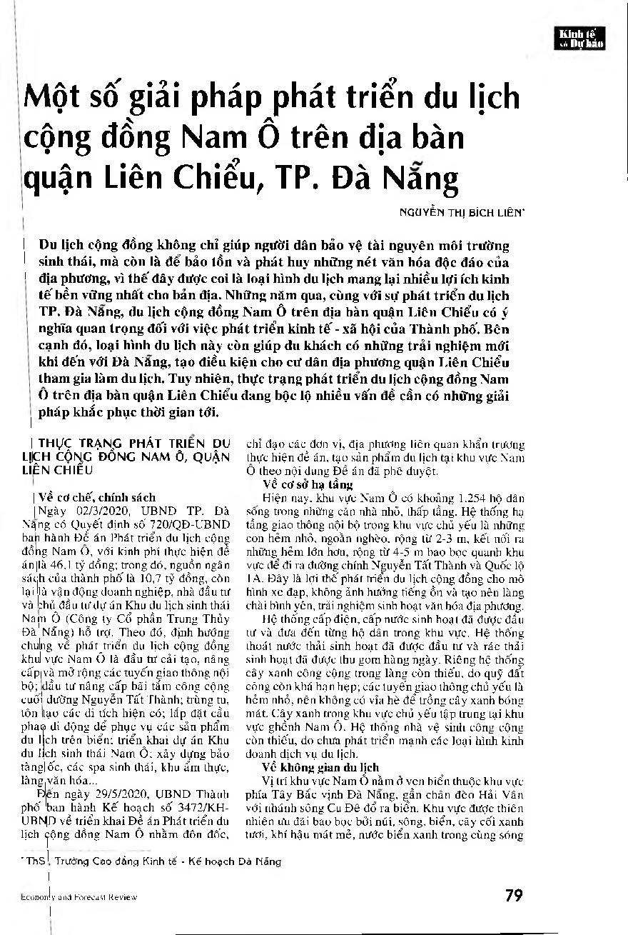 Một số giải pháp phát triển du lịch cộng đồng Nam Ô trên địa bàn quận Liên Chiểu. TP. Đà Nẵng