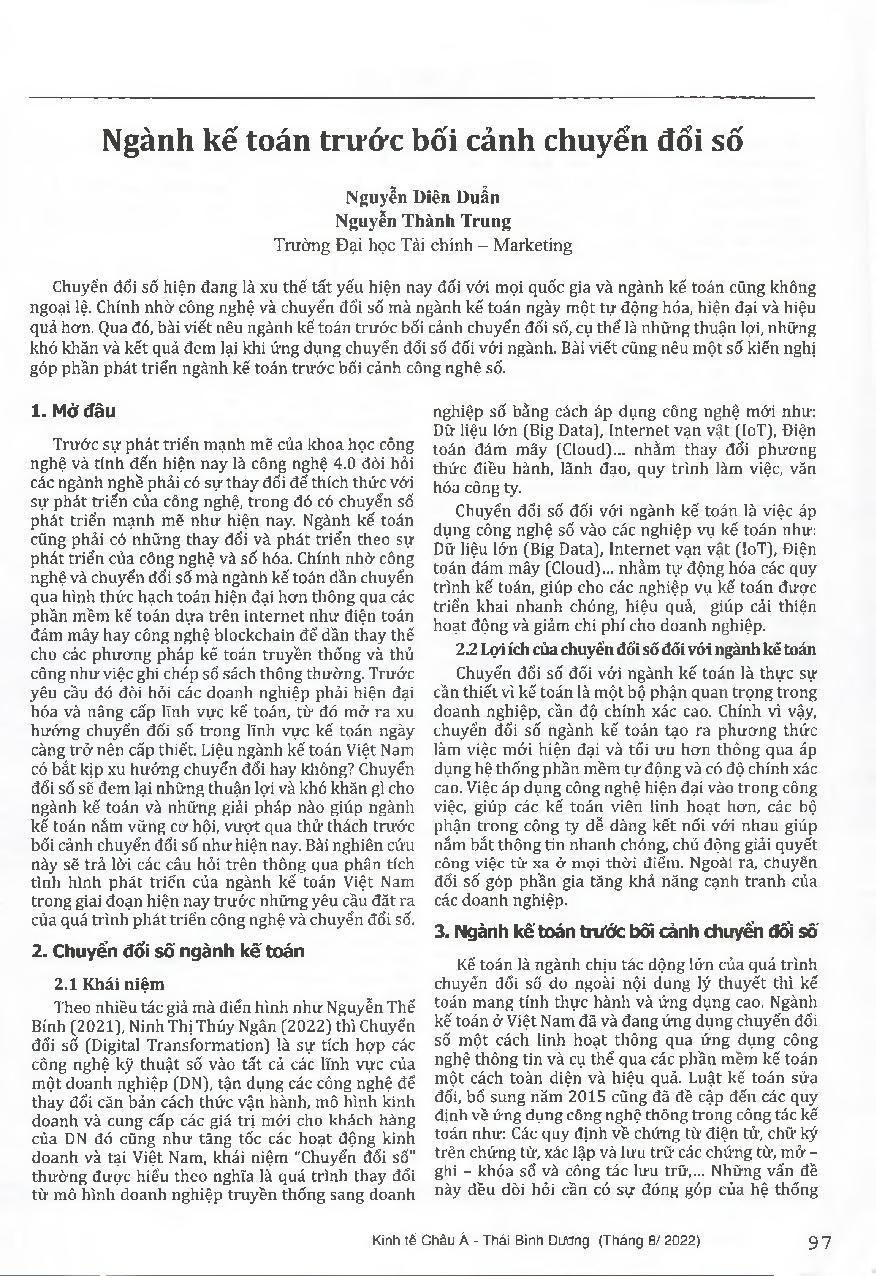 Ngành kế toán trước bối cảnh chuyển đổi số