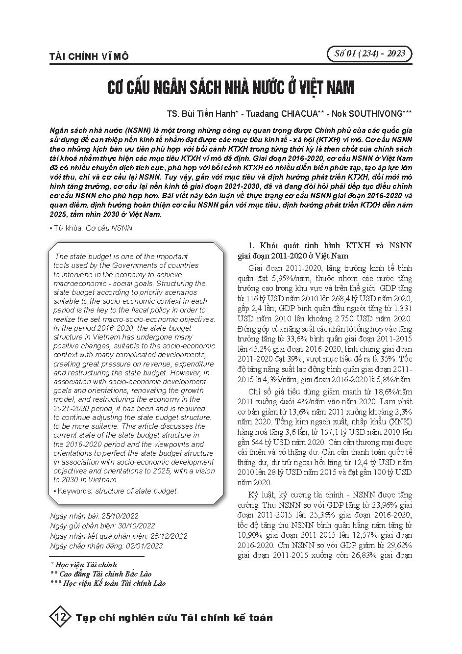 Tác giả: Bùi Tiến Hanh; Tuadang CHIACUA; Nok SOUTHIVONG;