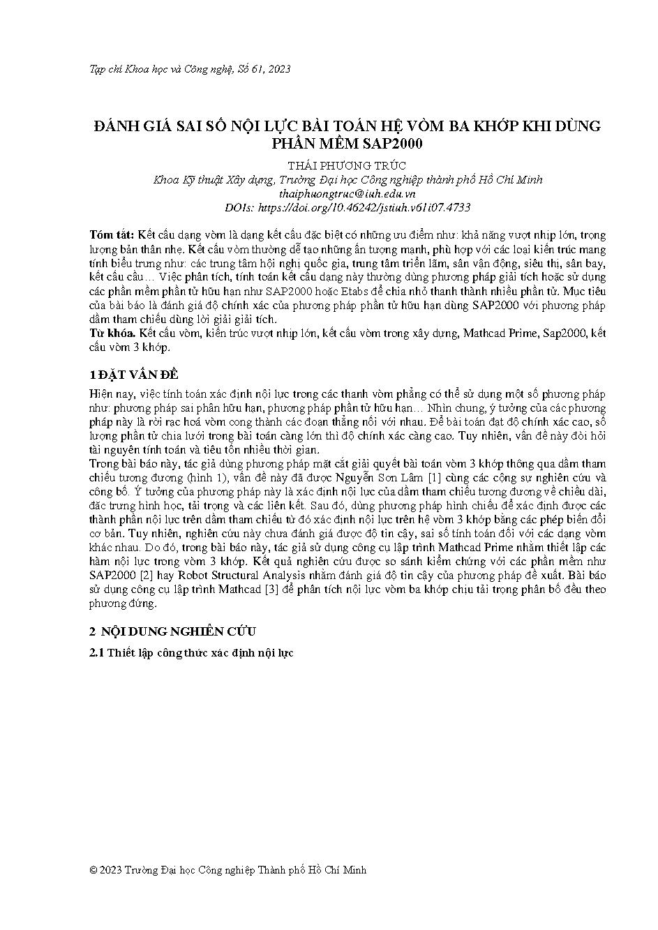 Đánh giá sai số nội lực bài toán hệ vòm ba khớp khi dùng phần mềm SAP2000 = Evaluation of error of internal force problems of three-joint arch system using sap2000