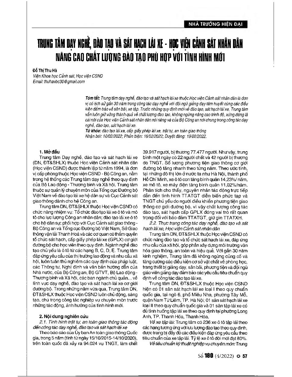 Trung tâm dạy nghề, đào tạo và sát hạch lái xe - Học viện Cảnh sát nhân dân nâng cao chất lượng đào tạo phù hợp với tình hình mới = Center for vocational training, training and driving test center - Academy of People&; 39;s Police improves the quality of t