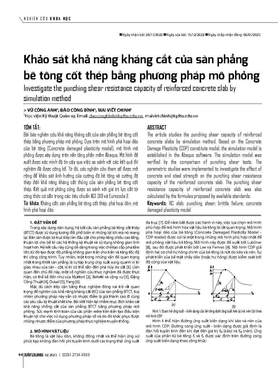 Khảo sát khả năng kháng cắt của sàn phẳng bê tông cốt thép bằng phương pháp mô phỏng = Investigate the punching shear resistance capacity of reinforced concrete slab by simulation method