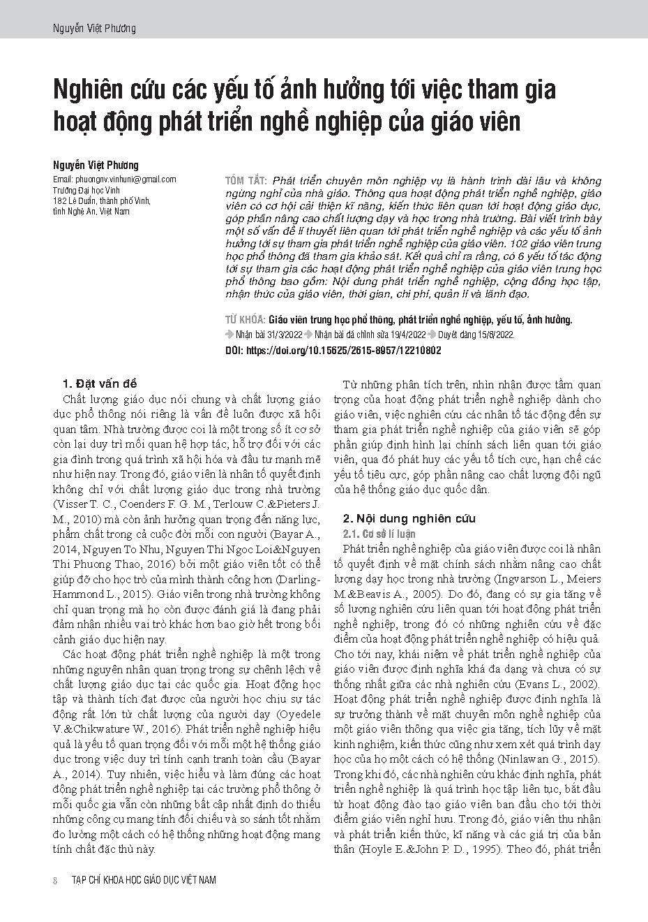 Nghiên cứu các yếu tố ảnh hưởng tới việc tham gia hoạt động phát triển nghề nghiệp của giáo viên = Research on factors affecting teachers’ participation in professional development