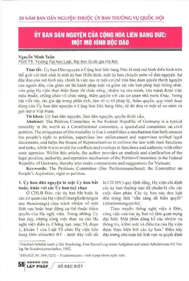 Ủy ban Dân nguyện của Cộng hòa liên bang Đức: một mô hình độc đáo = The People's Committee of the Federal Republic of Germany: a unique model