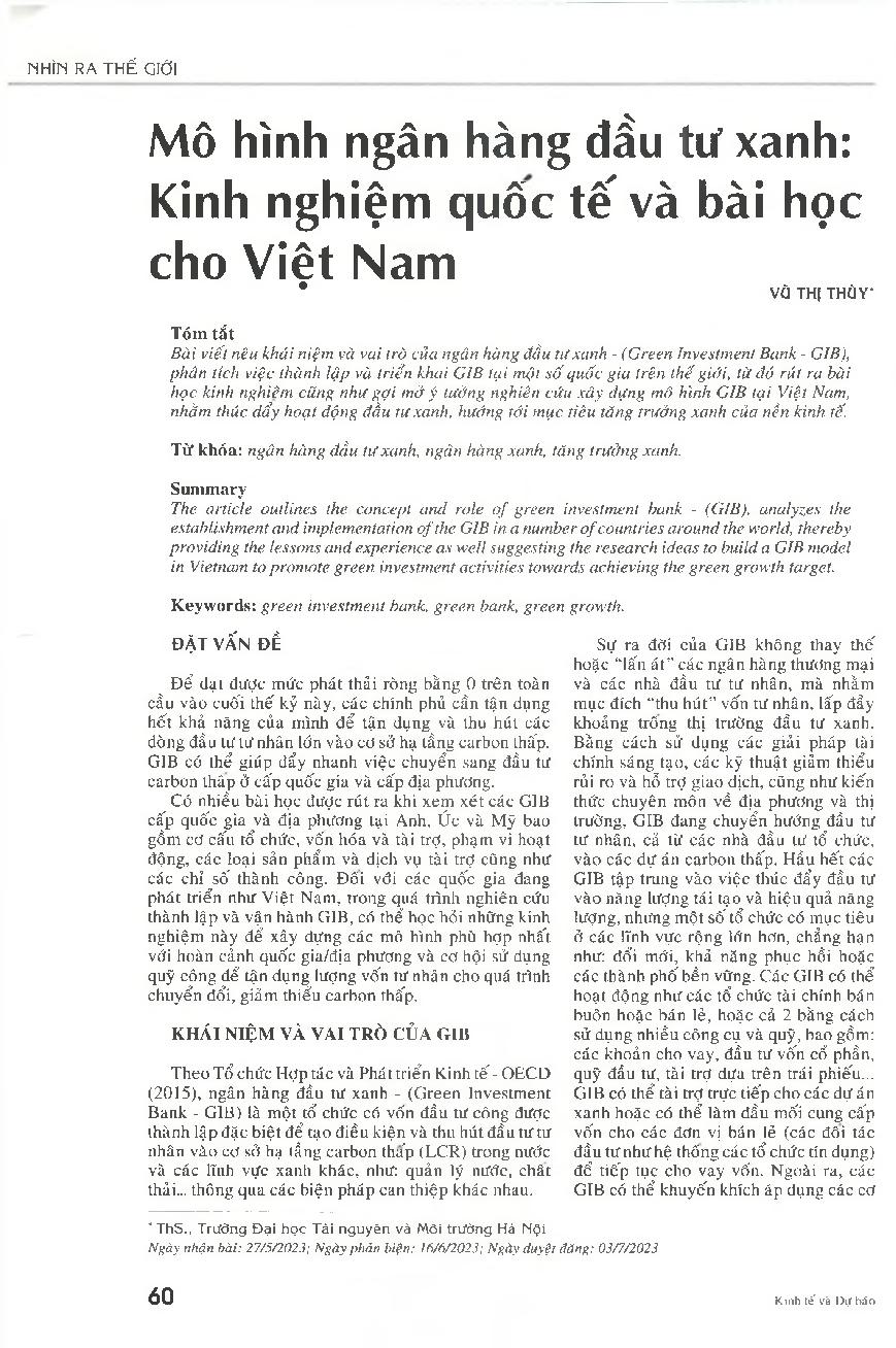 Mô hình ngân hàng đầu tư xanh: Kinh nghiệm quốc tế và bài học cho Việt Nam