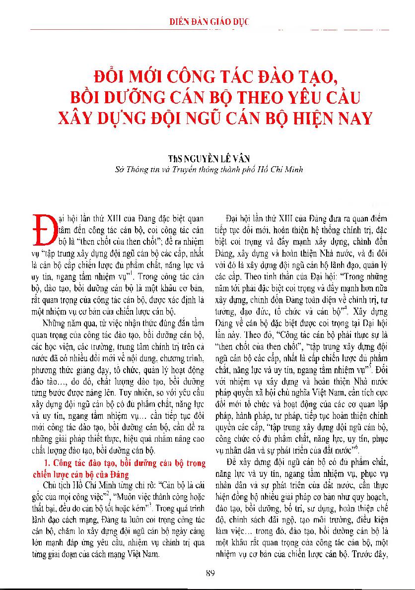 Đổi mới công tác đào tạo, bồi dưỡng cán bộ theo yêu cầu xây dựng đội ngũ cán bộ hiện nay