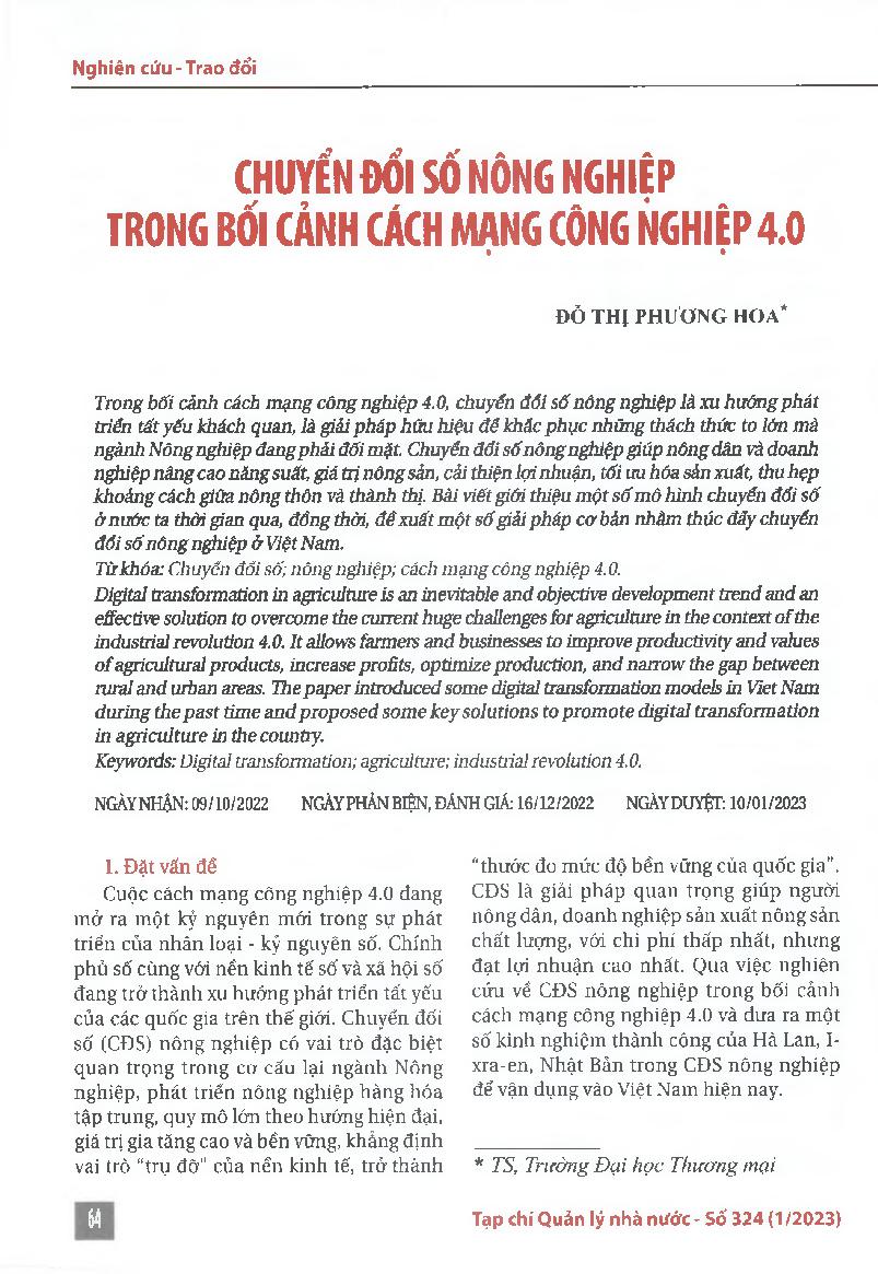 Chuyển đổi số nông nghiệp trong bối cảnh cách mạng công nghiệp 4.0 = Digital transformation in agriculture in the context of industrial revolution 4.0