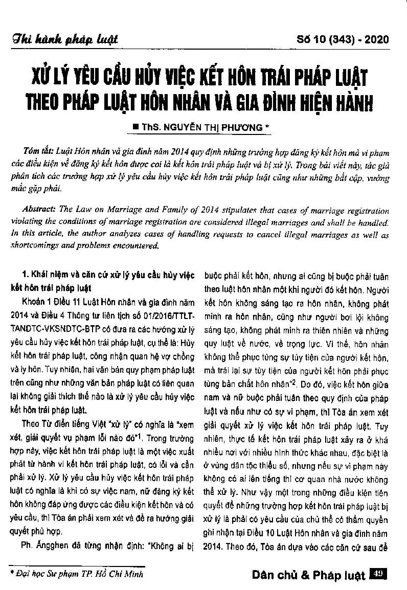 Xử lý yêu cầu hủy việc kết hôn trái pháp luật theo pháp luật hôn nhân và gia đình hiện hành. = Handling requests to cancel illegal marriages in accordance with current law on marriage and family.