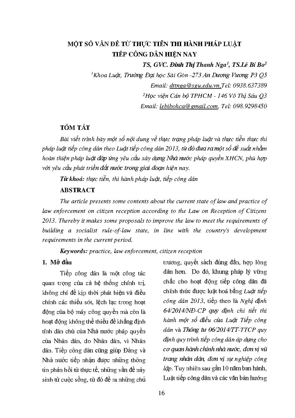 Một số vấn đề từ thực tiễn thi hành pháp luật tiếp công dân hiện nay.