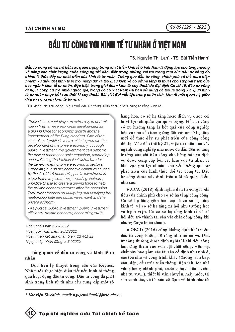 Đầu tư công với kinh tế tư nhân ở Việt Nam = Public investment with private economy in Vietnam