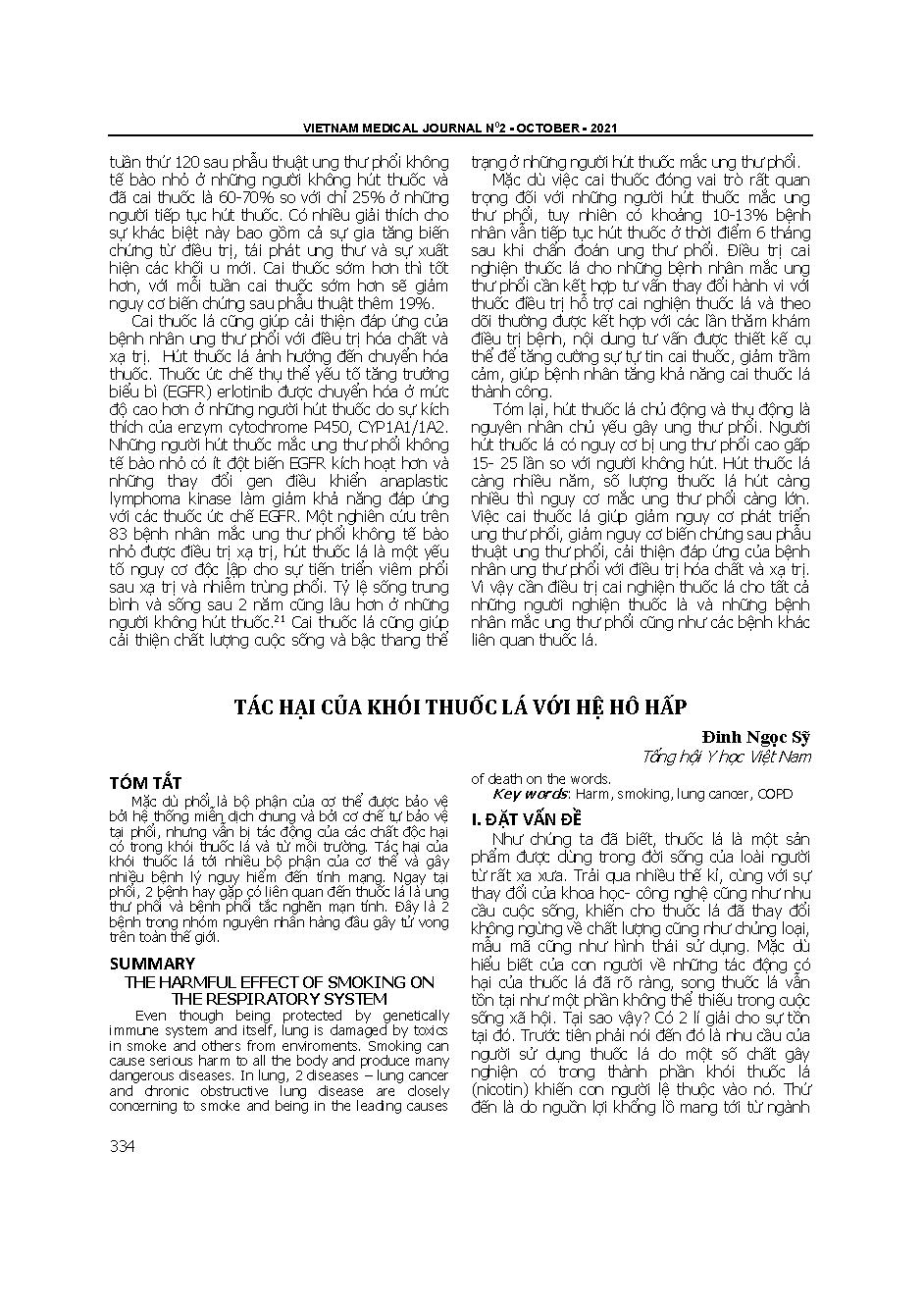 Tác hại của khói thuốc lá với hệ hô hấp = The harmful effect of smoking on the respiratory system