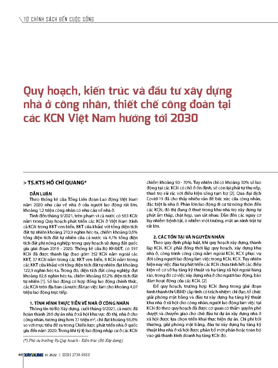 Quy hoạch, kiến trúc và đầu tư xây dựng nhà ở công nhân, thiết chế công đoàn tại các KCN Việt Nam hướng tới 2030