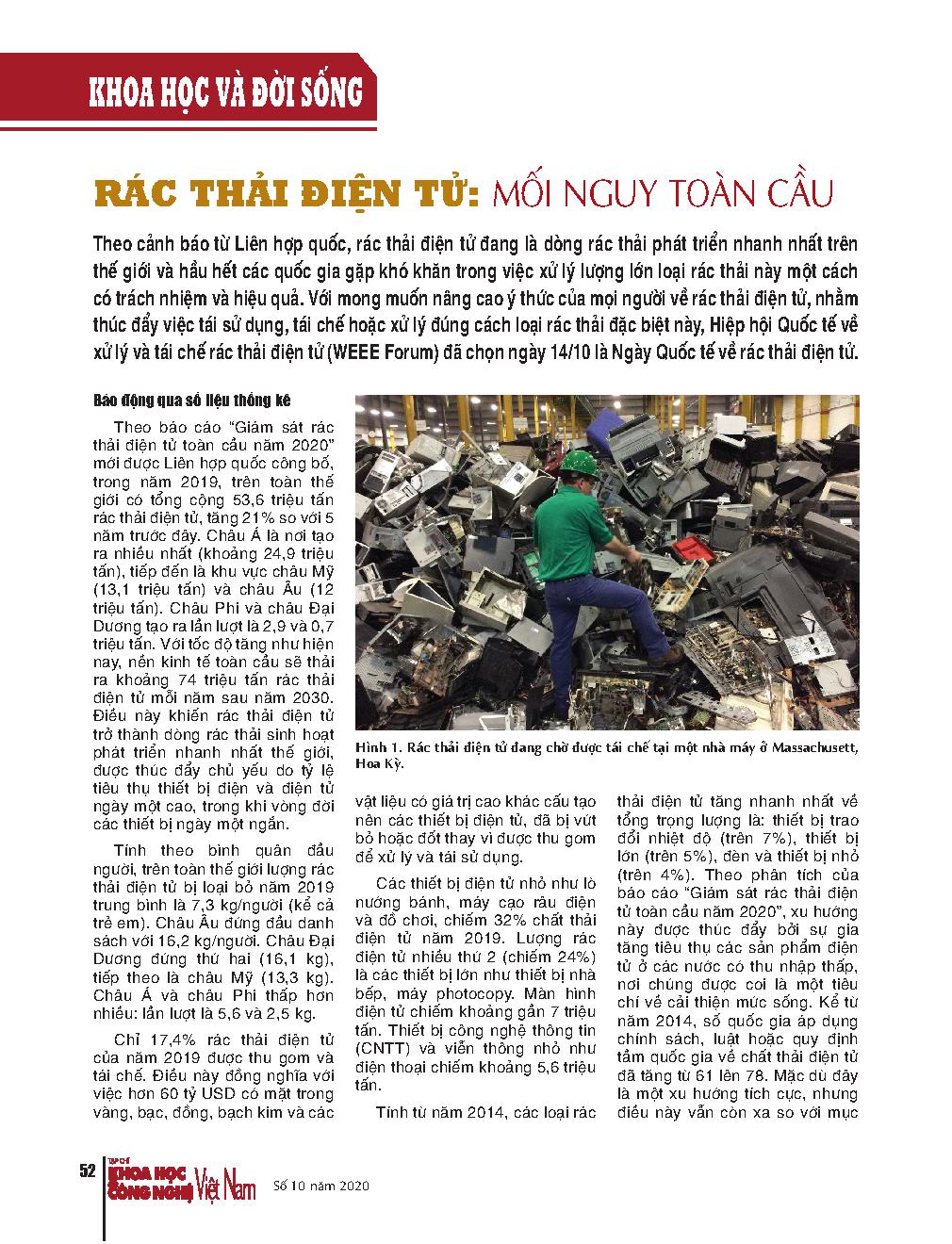 E - waste: A global hazard. = Rác thải điện tử: Mối nguy toàn cầu.