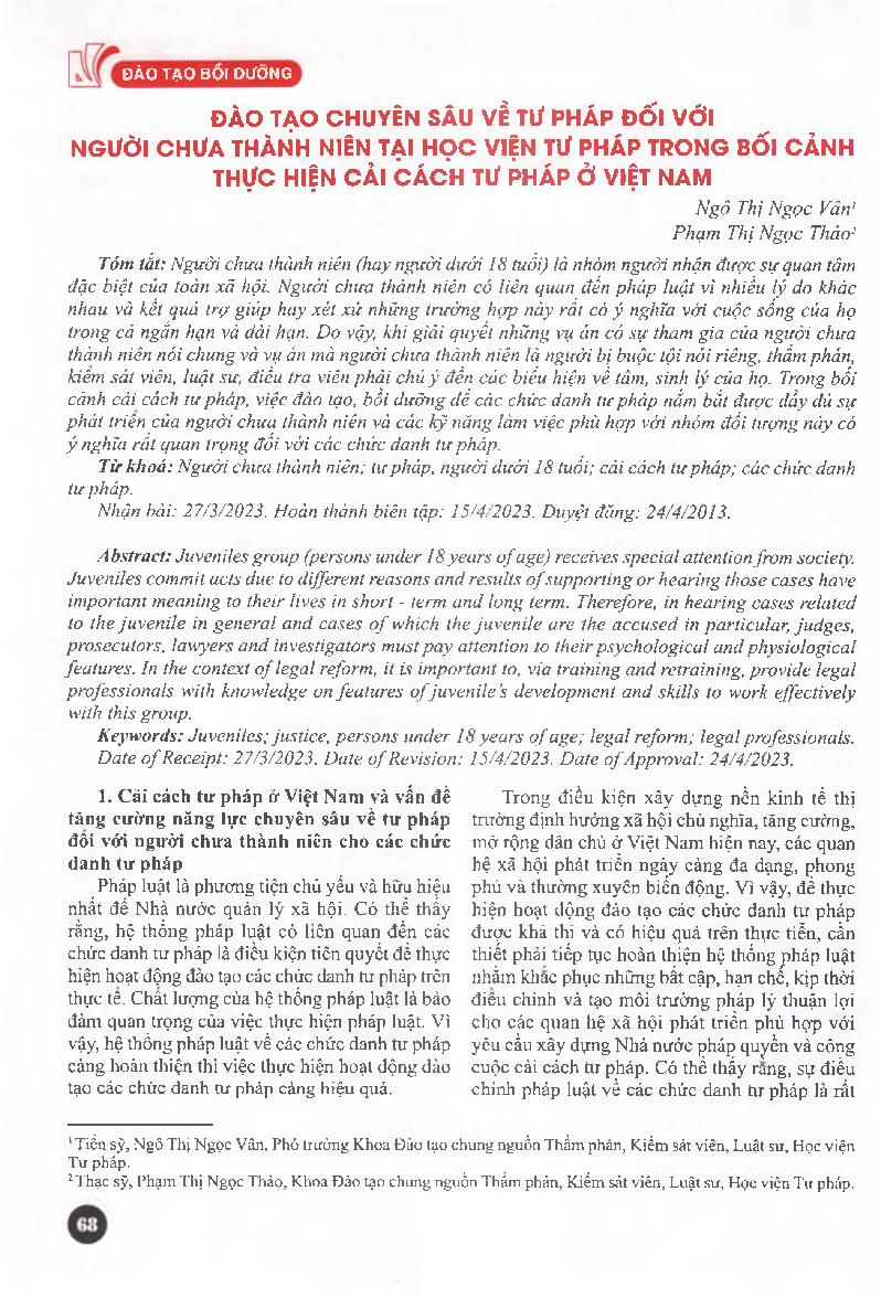 Đào tạo chuyên sâu về tư pháp đối với người chưa thành niên tại Học viện Tư pháp trong bối cảnh thực hiện cải cách tư pháp ở Việt Nam = Specialized training on justice for the juveniles at Judicial Academy in the context of legal reform in Vietnam