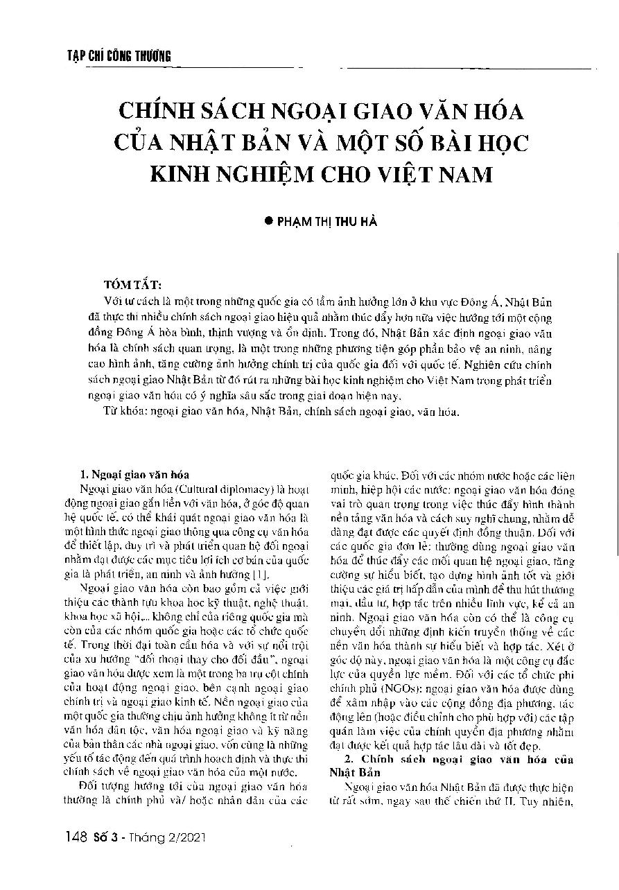 Chính sách ngoại giao văn hóa của Nhật Bản và một số bài học kinh nghiệm cho Việt Nam = Japan's cultural diplomacy and lessons for Vietnam