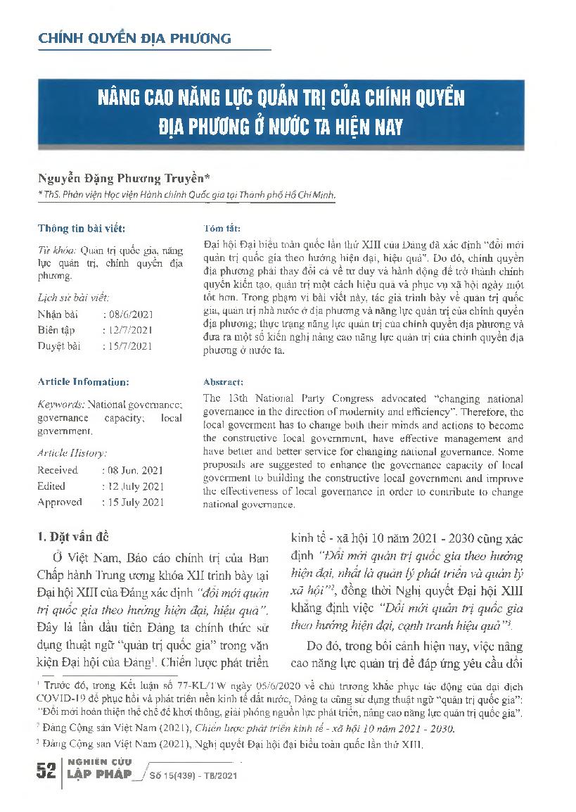 Nâng cao năng lực quản trị của chính quyền địa phương ở nước ta hiện nay