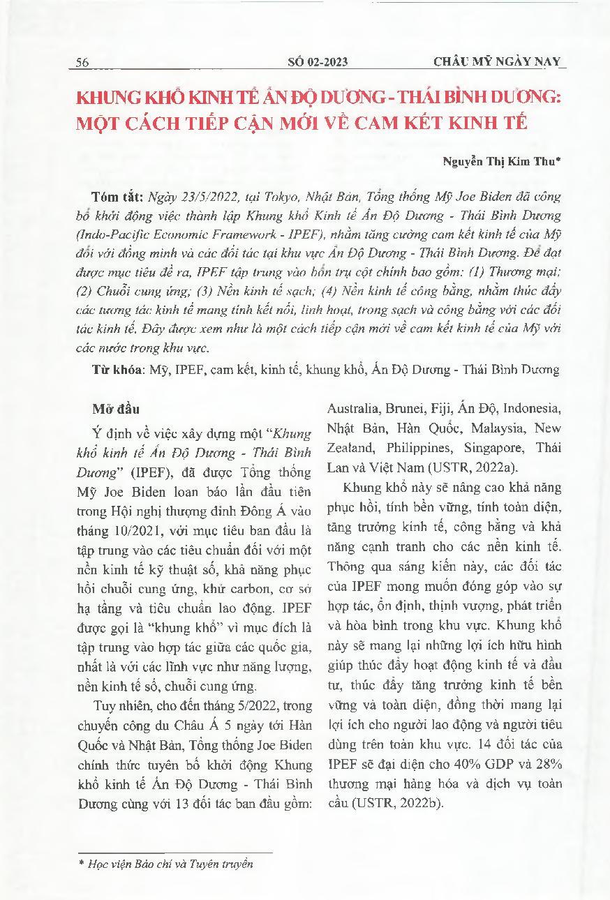 Khung khô kinh tê ảnđộ dương-thái binh dương: một cách tiếp cận mới về cam kết kinh té