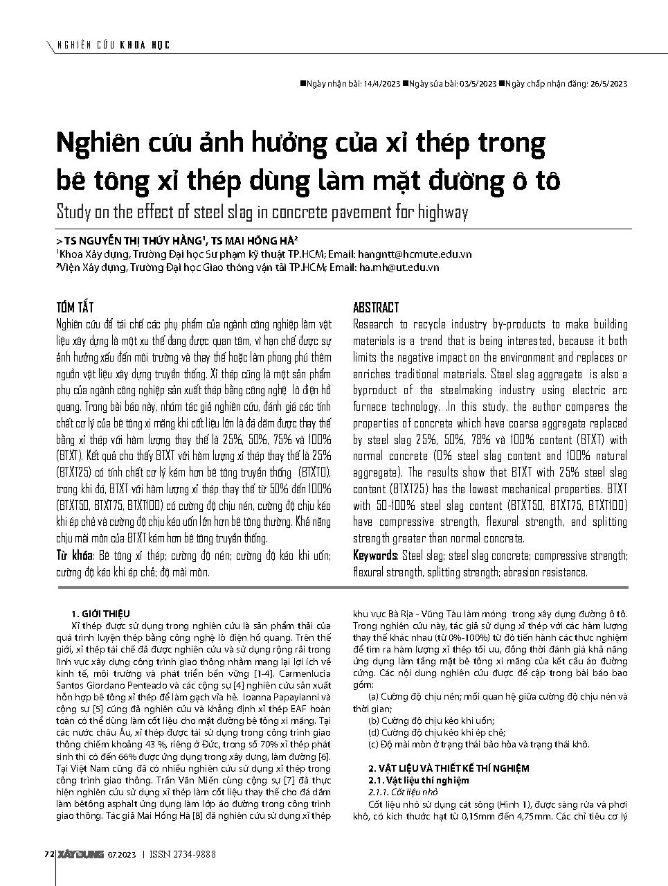 Nghiên cứu ảnh hưởng của xỉ thép trong bê tông xỉ thép dùng làm mặt đường ô tô = Study on the effect of steel slag in concrete pavement for highway