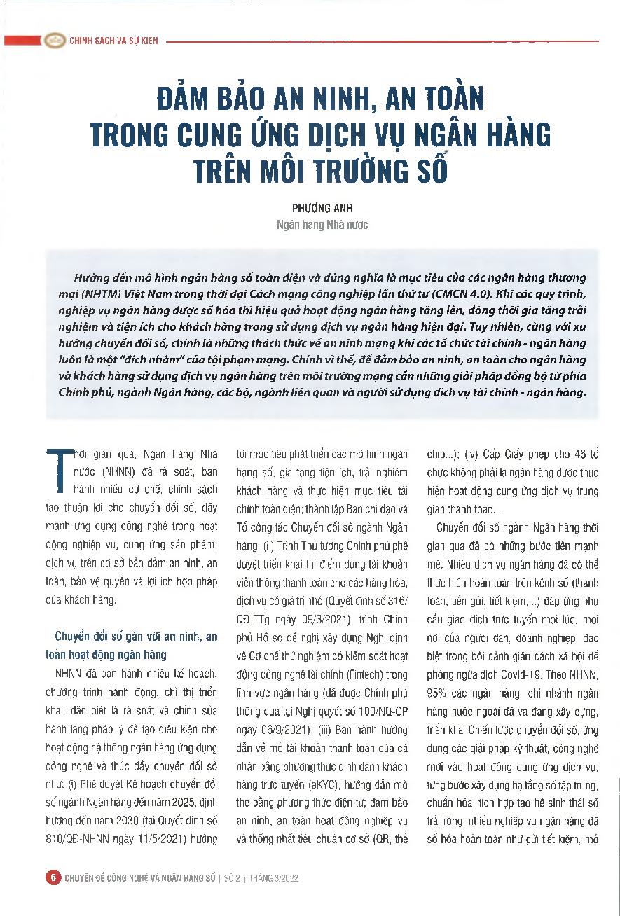 Đảm bảo an ninh, an toàn trong cung ứng dịch vụ ngân hàng trên môi trường số. = Ensuring security and safety in providing banking services in the digital environment.