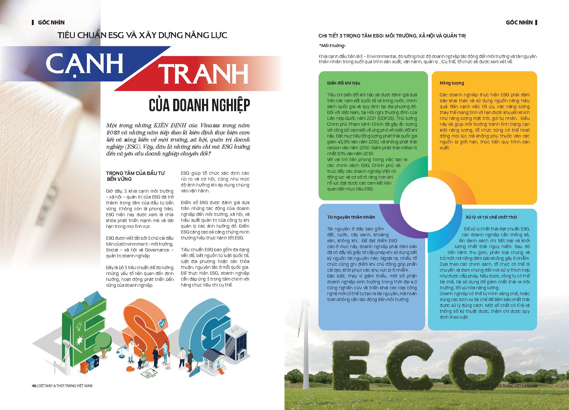 Tiêu chuẩn ESG và xây dựng năng lực cạnh tranh của doanh nghiệp