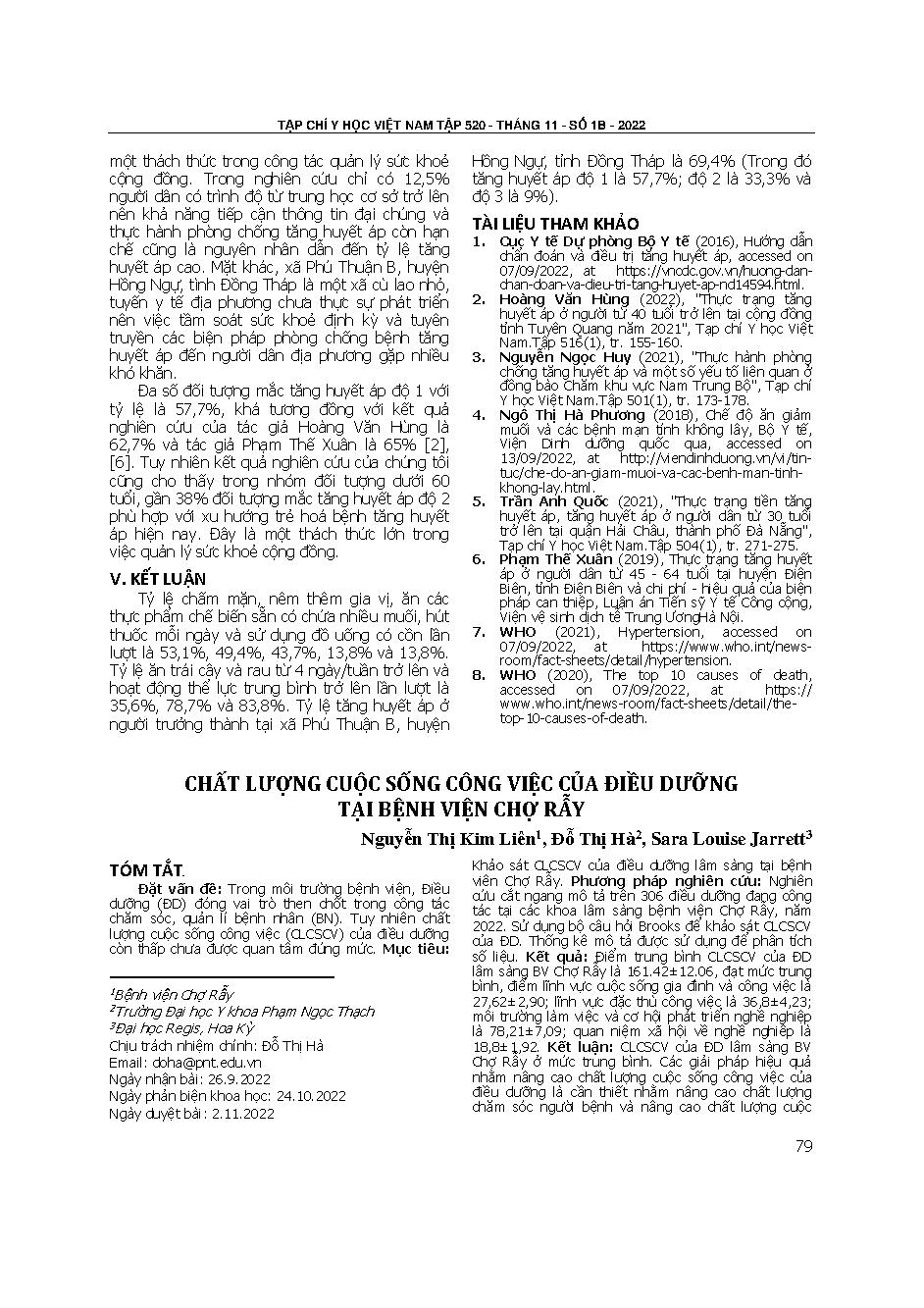 Chất lượng cuộc sống công việc của điều dưỡng tại Bệnh viện Chợ Rẫy = Quality of nursing work life at Cho Ray hospital