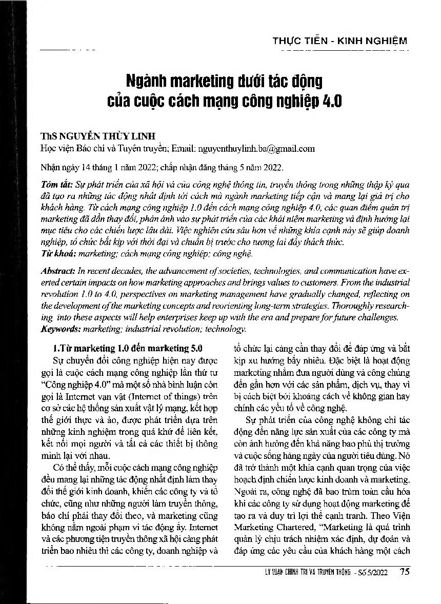 Ngành marketing dưới tác động của cuộc cách mạng công nghiệp 4.0 = Marketing industry under the impact of industrial revolution 4.0.