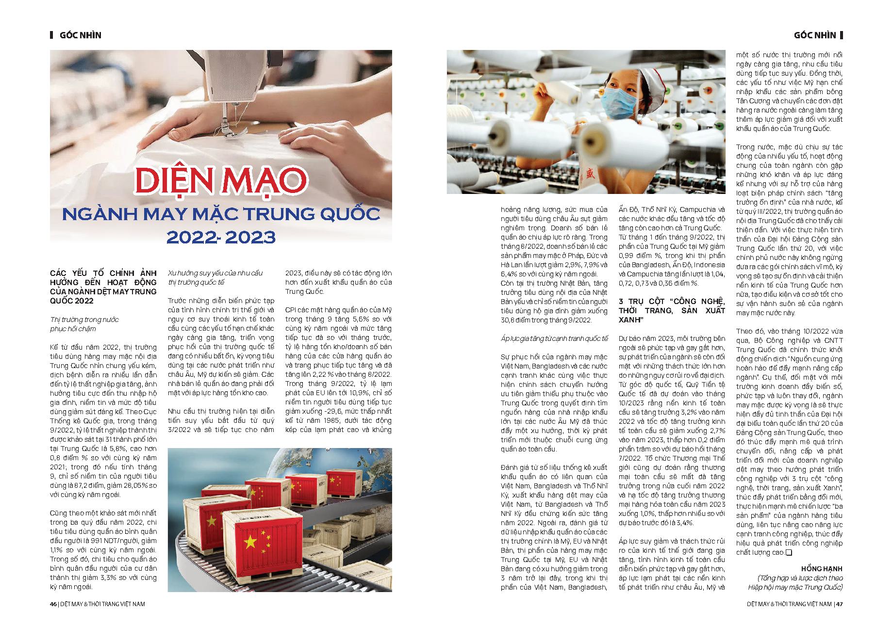 Diện mạo ngành may mặc Trung Quốc 2022- 2023